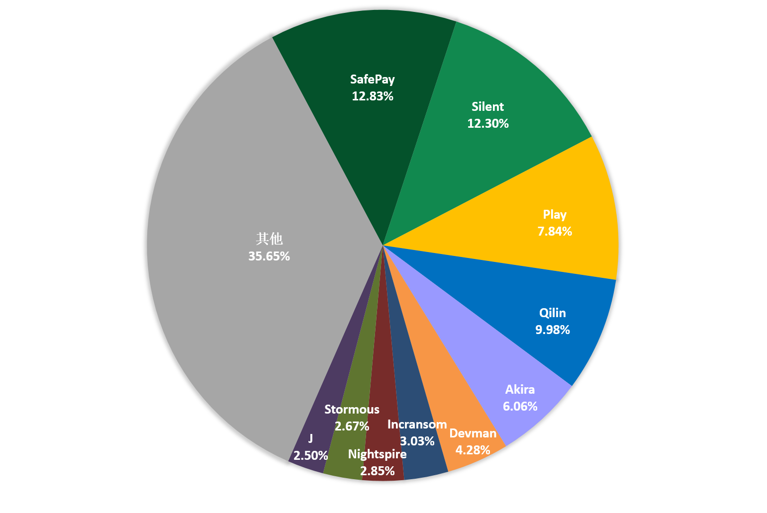图4. 2025年5月通过数据泄露获利的勒索软件家族占比
