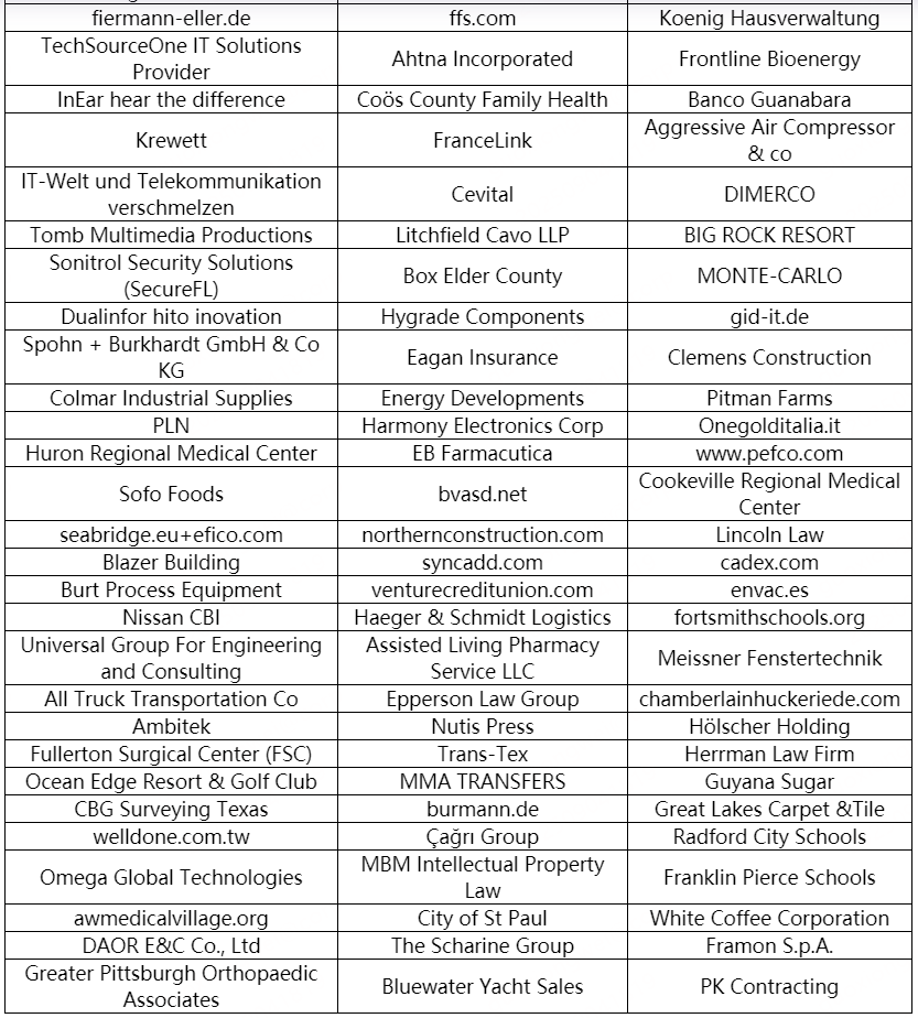 以下是本月被双重勒索软件家族攻击的企业或个人。未发现数据存在泄漏风险的企业或个人,也请第一时间自查,做好数据已被泄露准备,采取补救措施。