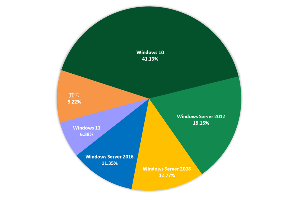 对本月受害者所使用的操作系统进行统计,位居前三的是:Windows 10、Windows Server 2012以及Windows Server 2008。